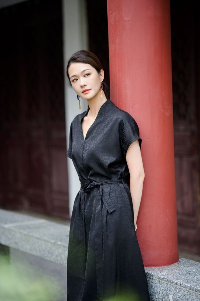 黑色面料沉稳低调。穿着它站在宽大的芭蕉叶下,自然就有一股凉意,令人神宁心静。
