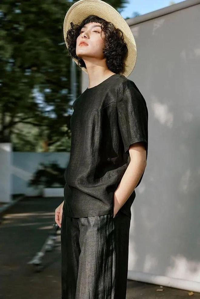 黑色面料沉稳低调。穿着它站在宽大的芭蕉叶下,自然就有一股凉意,令人神宁心静。