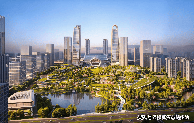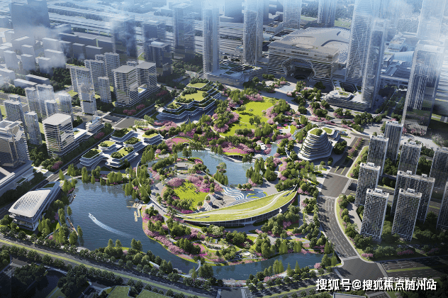 约30公顷诗画江南就在楼下,设置了骑行道、跑步道、慢行道等活力空间,现公园一期换乘综合体已开工,构建集公交、水上巴士、云轨、步道等于一体的“慢行网络”,与高铁、地铁网络并联,快慢有度。